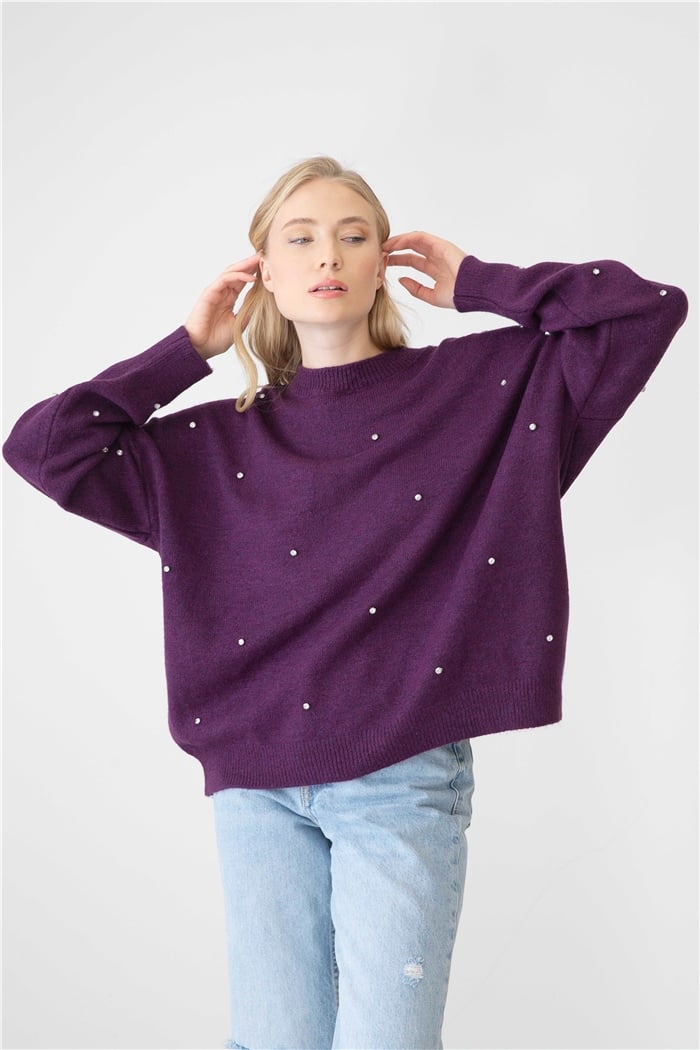 Nisan Kadın Bisiklet Yaka Taşlı Salaş Kazak MOR TT3735-Z