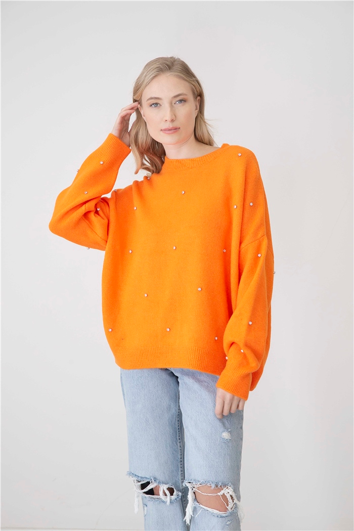 Nisan Kadın Bisiklet Yaka Taşlı Salaş Kazak ORANJ TT3735-Z