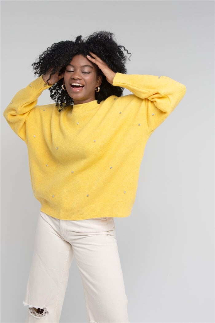 Bisiklet Yaka Taşlı Salaş Kazak SARI