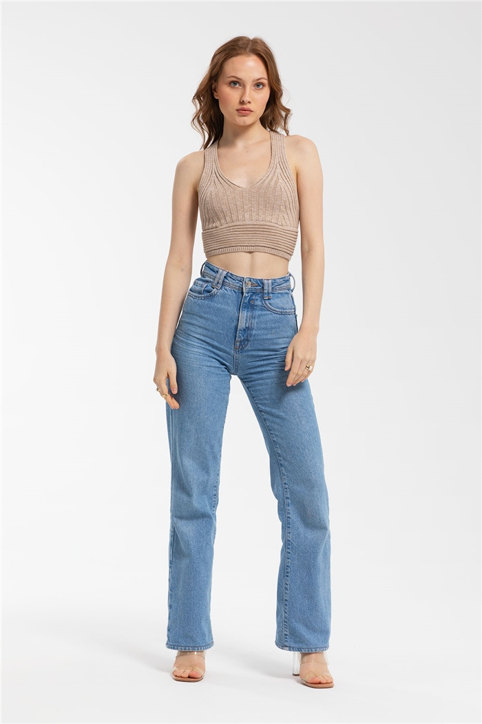 Nisan Çapraz Askılı Crop Triko Atlet  BEJ  TT3142-Z