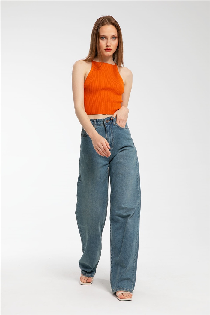 Nisan Kadın Çapraz Askılı Dik Yaka Triko Atlet ORANJ TT3143-Z (TT3143-Z)