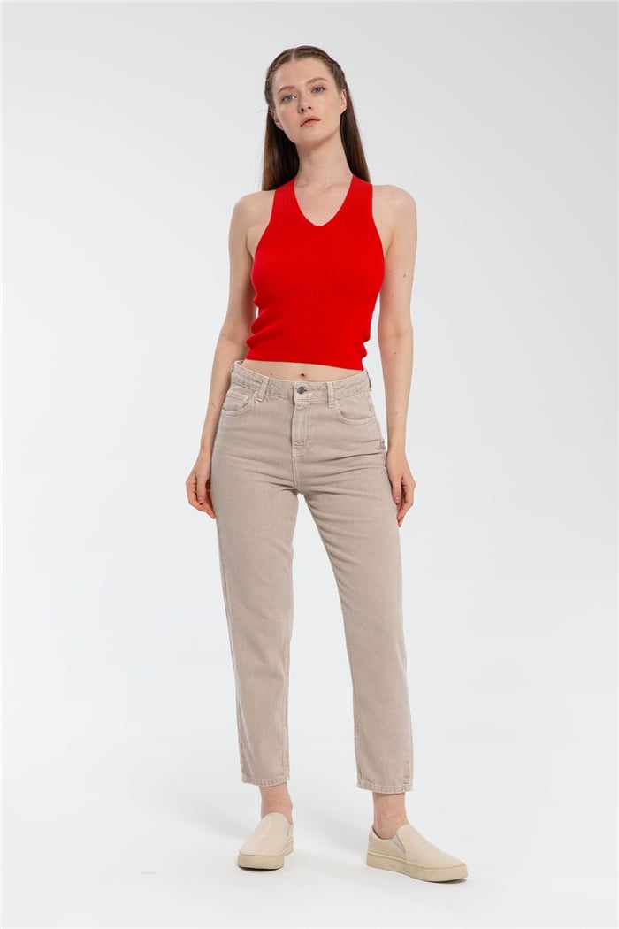 Nisan Çapraz Askılı Triko Bluz  KIRMIZI  TT3092-Z