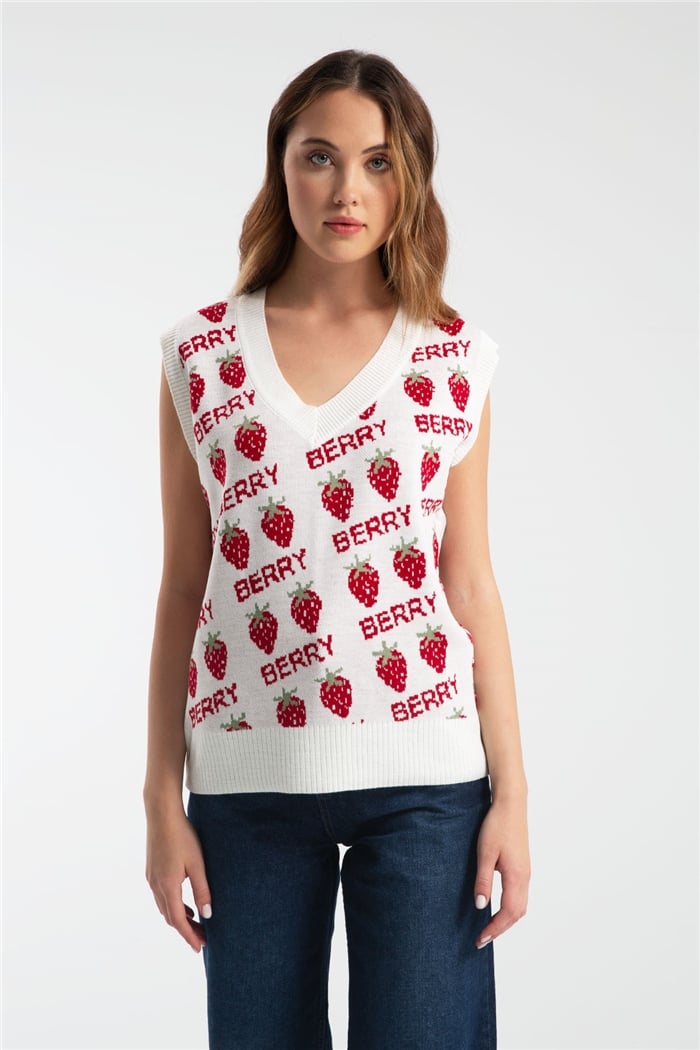 Nisan Kadın Çilek Desen Triko Süveter EKRU TT2903-Z (TT2903-Z)