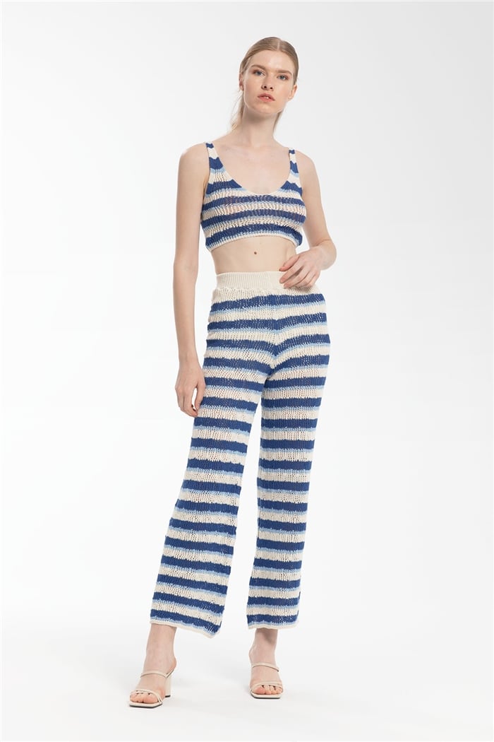 Nisan Kadın Çizgi Desen Triko Atlet İNDİGO TT3207-Z (TT3207-Z)