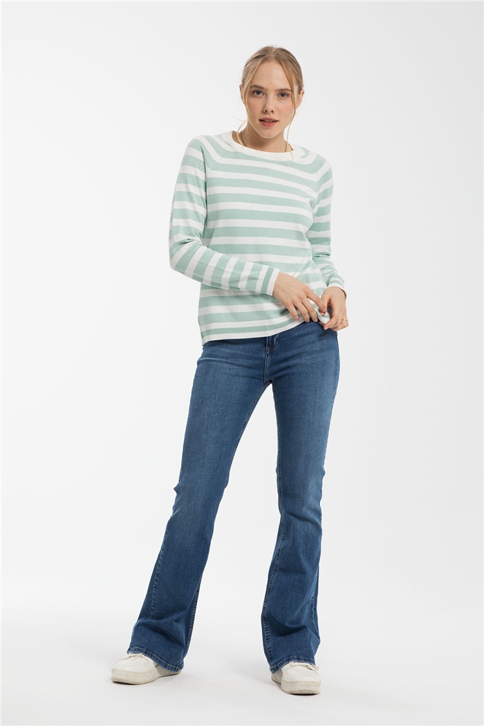 Nisan Kadın Çizgili Bisiklet Yaka Triko Kazak HAM-MİNT TT3318-Z (TT3318-Z)