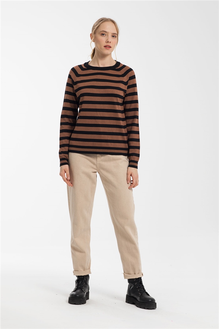 Nisan Kadın Çizgili Bisiklet Yaka Triko Kazak SİYAH-KAHVE TT3318-Z (TT3318-Z)