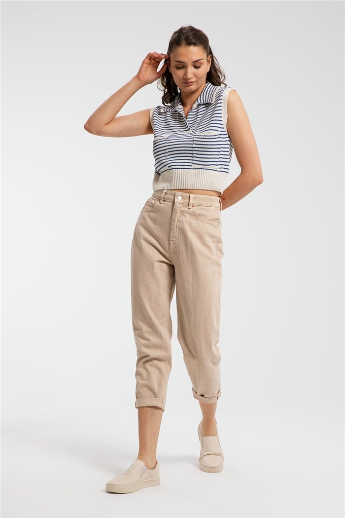 Nisan Kadın Çizgili Gömlek Yaka Triko Süveter SAKS TT3148-Z (TT3148-Z)