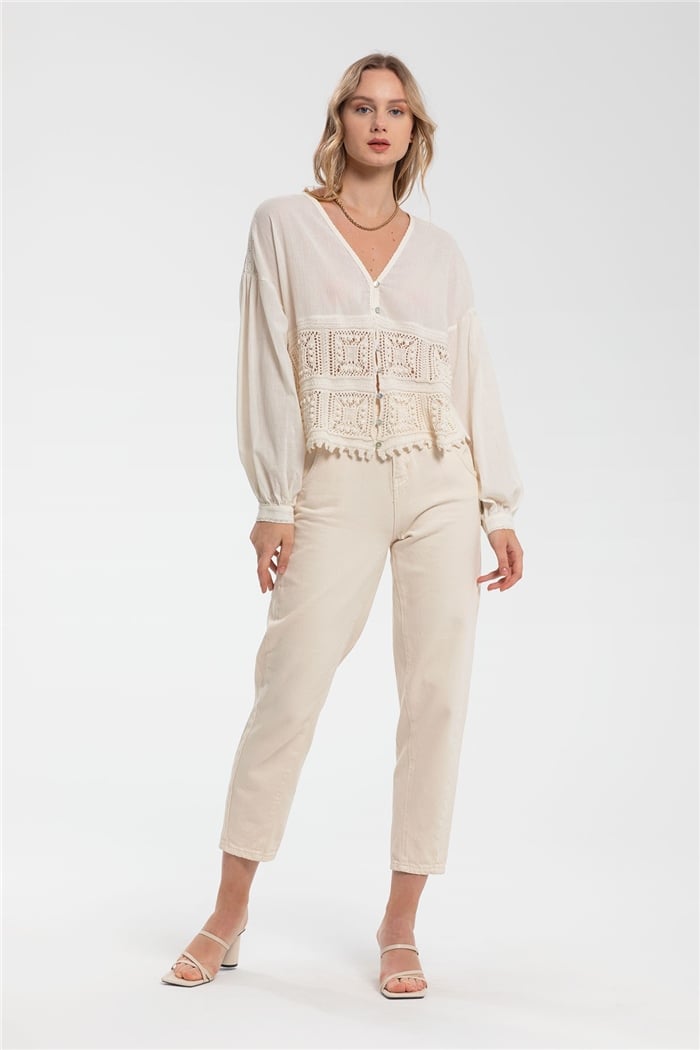 Nisan Dantelli Bluz  EKRU  N21-1160