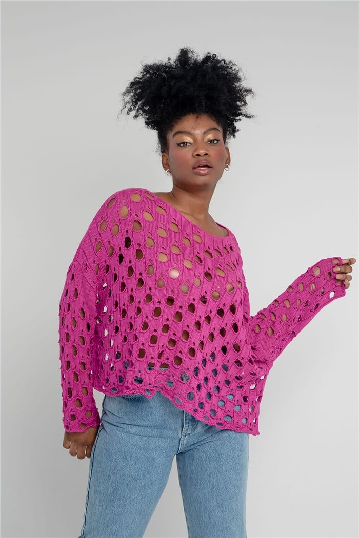 Kontrast yaratan renk geçişleri ile süslenen delikli triko kazaklar, zamansız şıklığı gözler önüne seriyor.