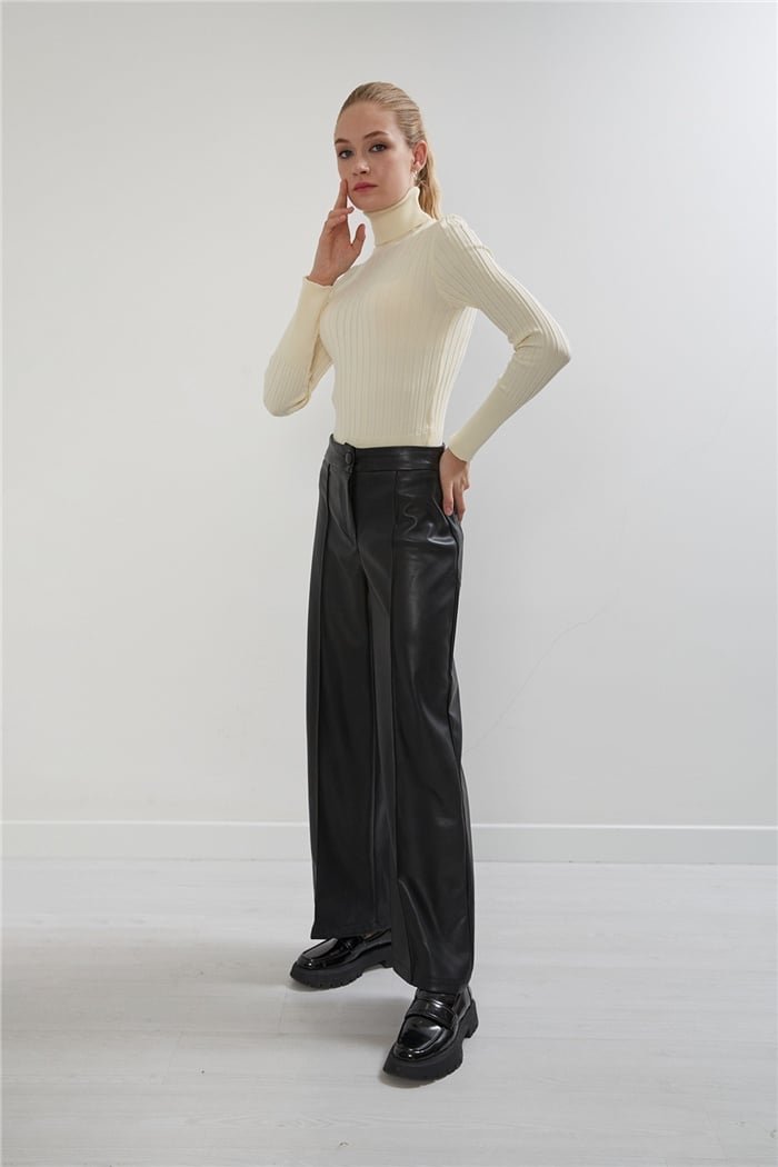 Nisan Kadın Deri Pantolon SİYAH N22-1538 (N22-1538)