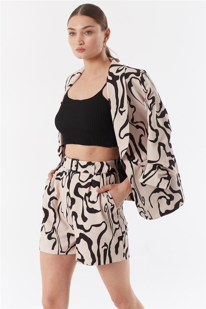 Nisan Kadın Desenli Şort BEJ N22-1332 (N22-1332)