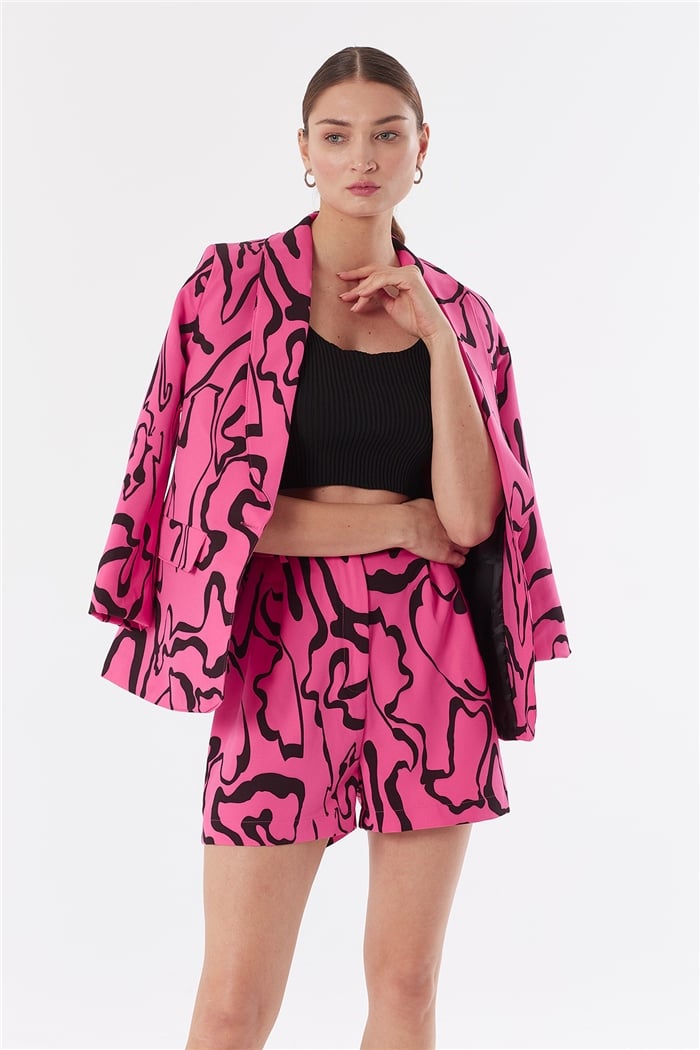 Nisan Desenli Şort  FUŞYA  N22-1332