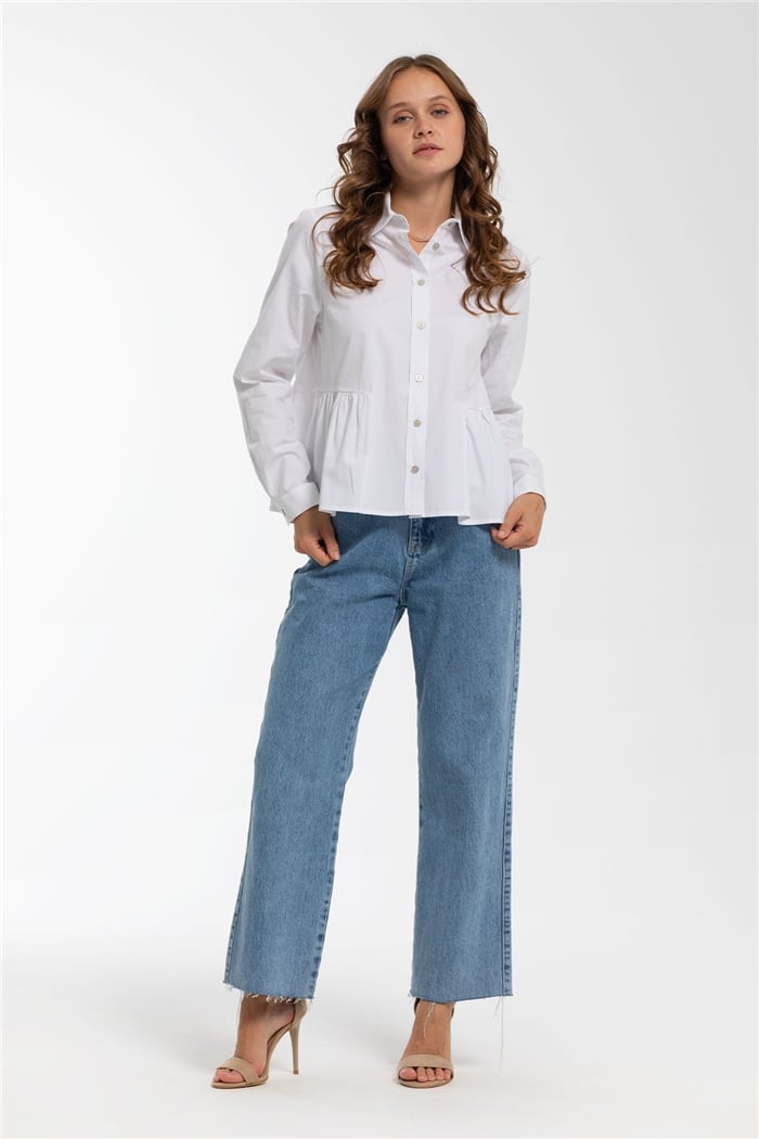 Nisan Kadın Düğmeli Gömlek BEYAZ N21-1236 (N21-1236)