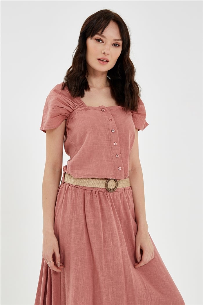 Nisan Düğmeli Kısa Bluz  GÜL KURUSU  PT20-106