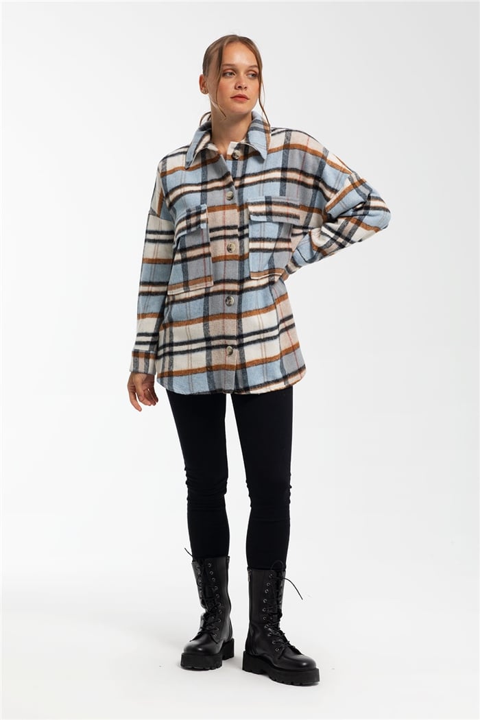 Nisan Kadın Ekoseli Gömlek MAVİ N21-1217 (N21-1217)