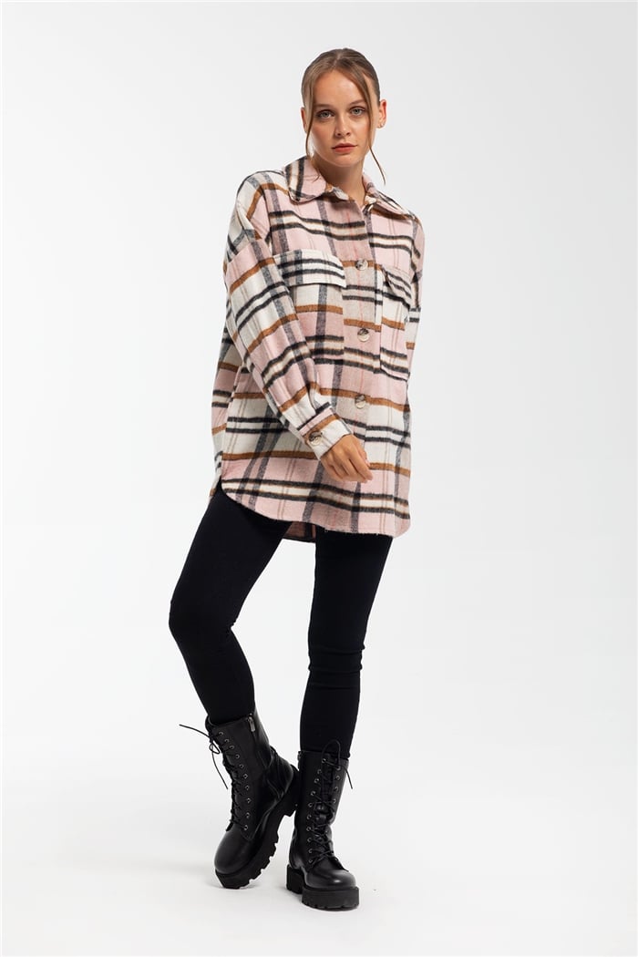 Nisan Kadın Ekoseli Gömlek PUDRA N21-1217 (N21-1217)