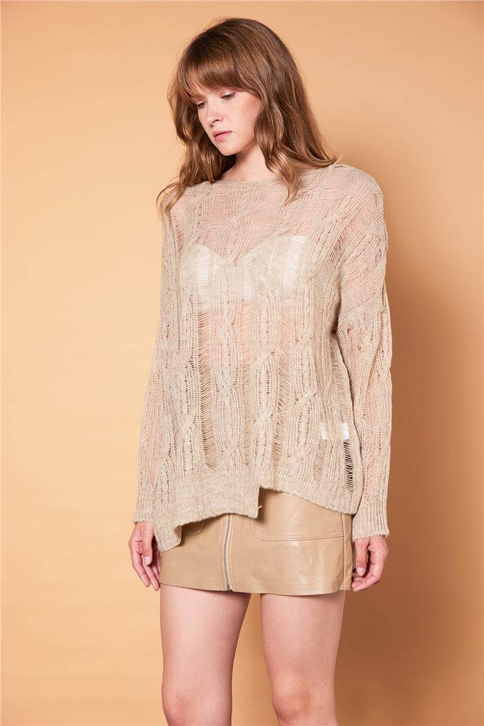 Saç Örgülü Ajurlu Kazak TT4134-Z
