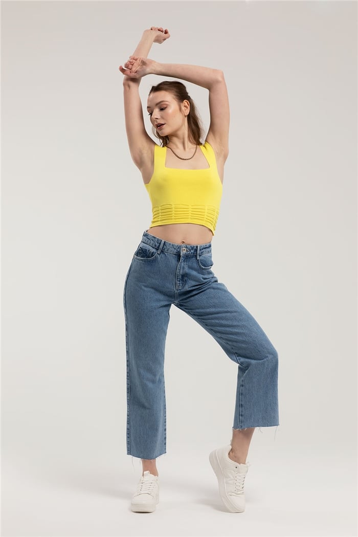 Nisan Etek Ucu Desenli Kare Yaka Triko Atlet  SARI  TT3084-Z