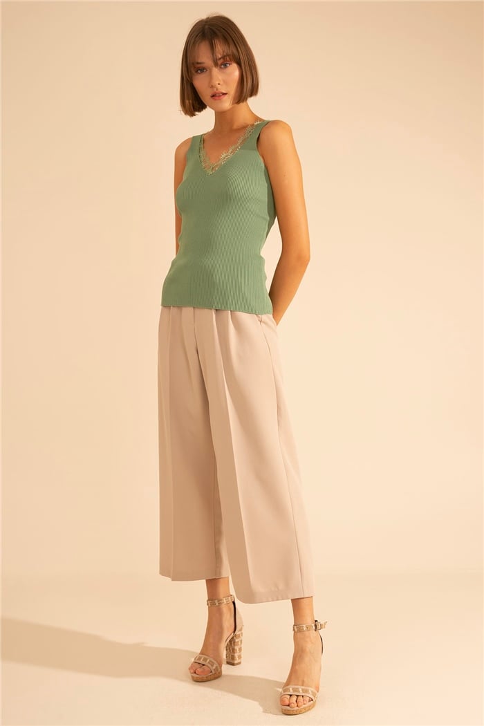 Nisan Kadın Fitilli V Yaka Dantelli Triko Atlet ÇAĞLA YEŞİLİ TT1737 (TT1737)