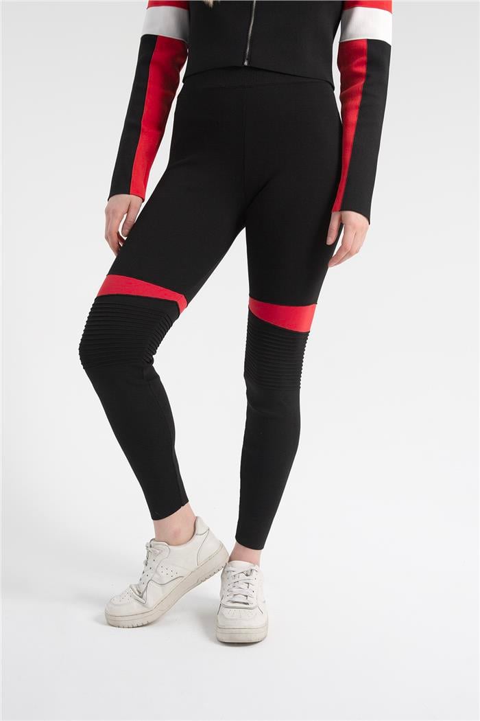 Nisan Garnili Triko Kadın Tayt SİYAH-KIRMIZI TT3795-Z