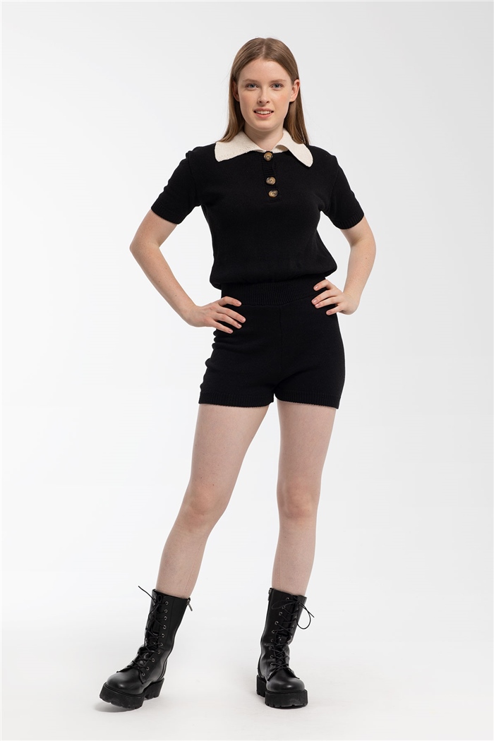 Nisan Kadın Gömlek Yaka Kısa Kol Triko Tulum SİYAH TT3158-Z (TT3158-Z)