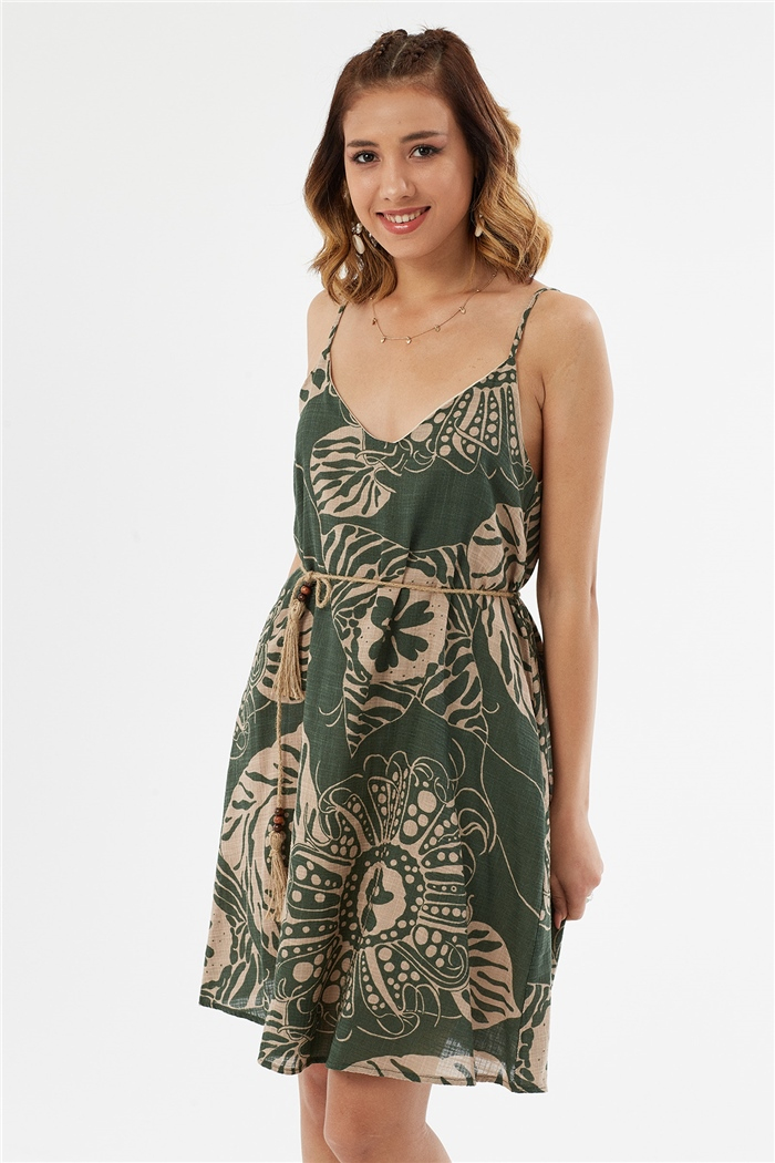Nisan HASIR KEMERLİ ELBİSE  HAKİ  N22-1442