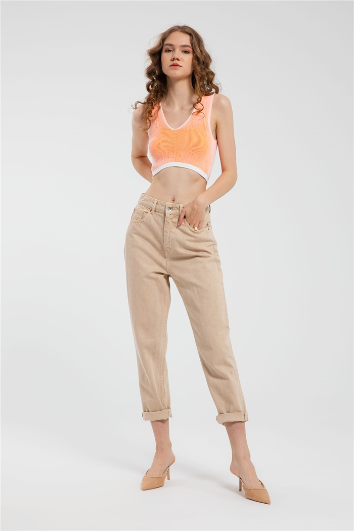 Nisan Kadın Jakar Fitilli V Yaka Triko Atlet NEON ORANJ TT3124-T (TT3124-T)