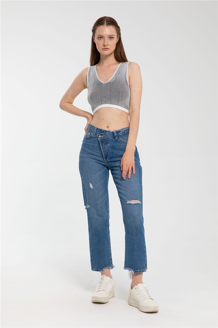 Nisan Kadın Jakar Fitilli V Yaka Triko Atlet SİYAH TT3124-T (TT3124-T)