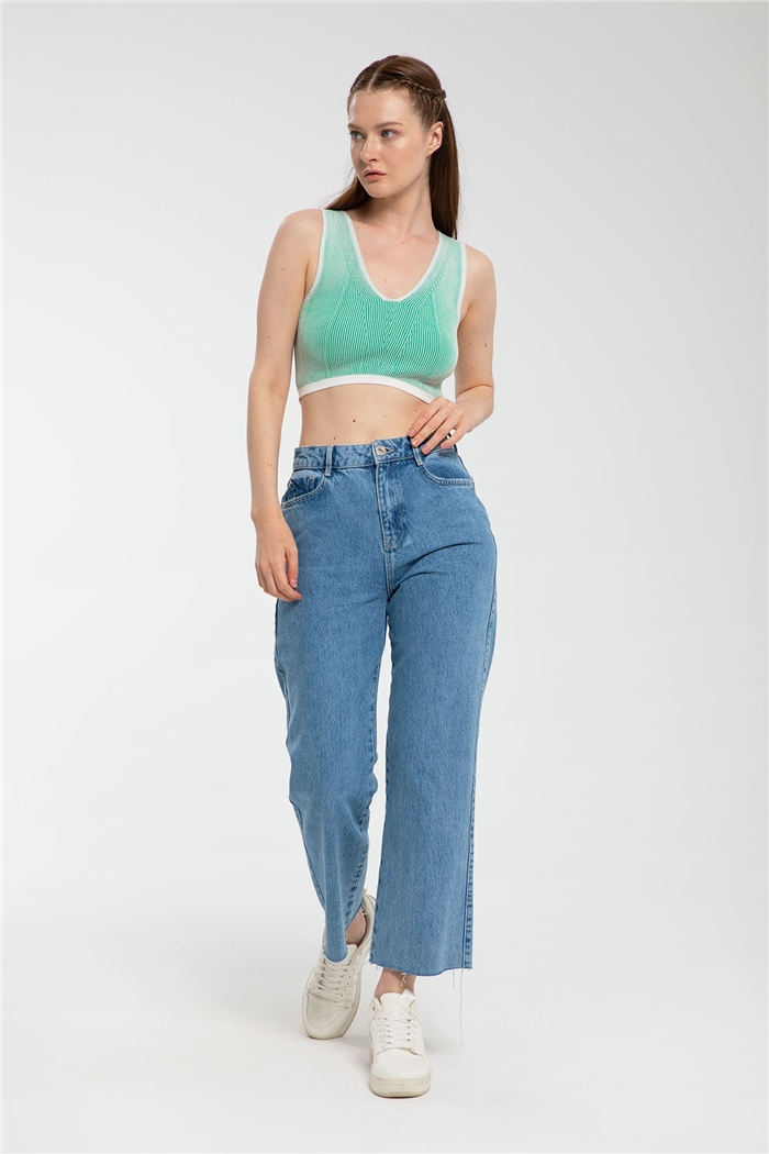 Nisan Kadın Jakar Fitilli V Yaka Triko Atlet YEŞİL TT3124-T (TT3124-T)