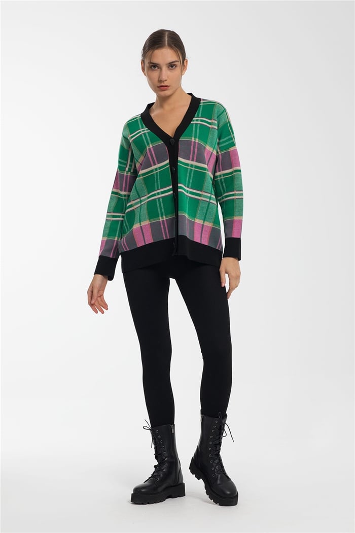 Jakarlı Ekoseli Triko Hırka TT3283-Z