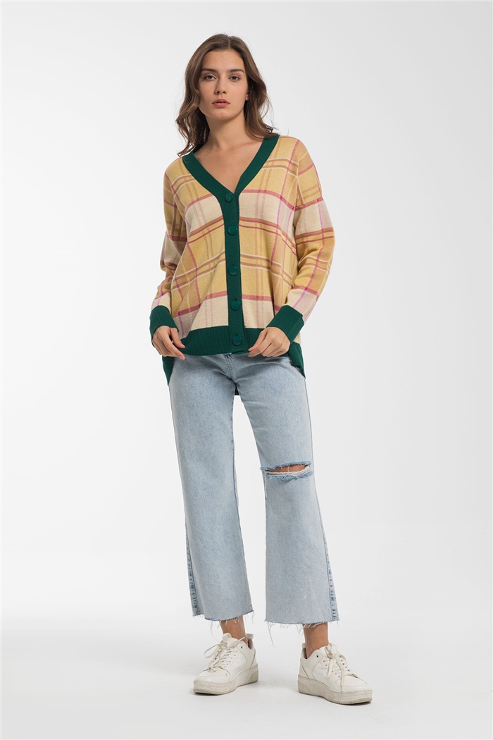 Jakarlı Ekoseli Triko Hırka TT3283-Z