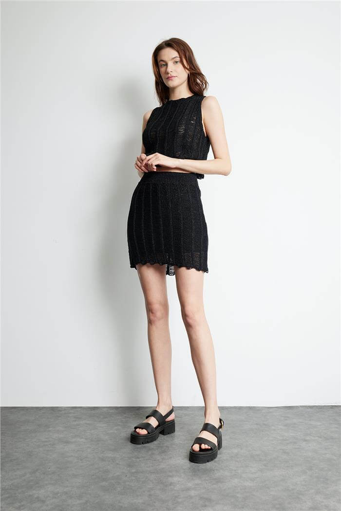 Nisan Kadın Ajurlu Kısa Triko Etek SİYAH TT4261-Z (TT4261-Z)