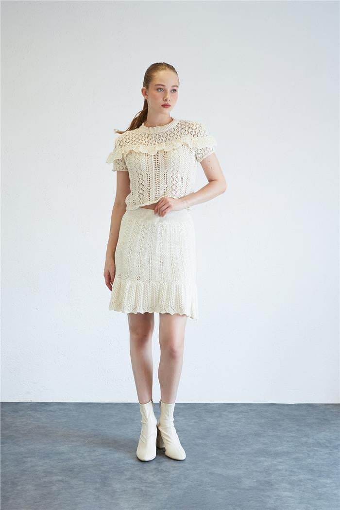 Nisan Kadın Ajurlu Triko Etek HAM EKRU TT4058-Z (TT4058-Z)