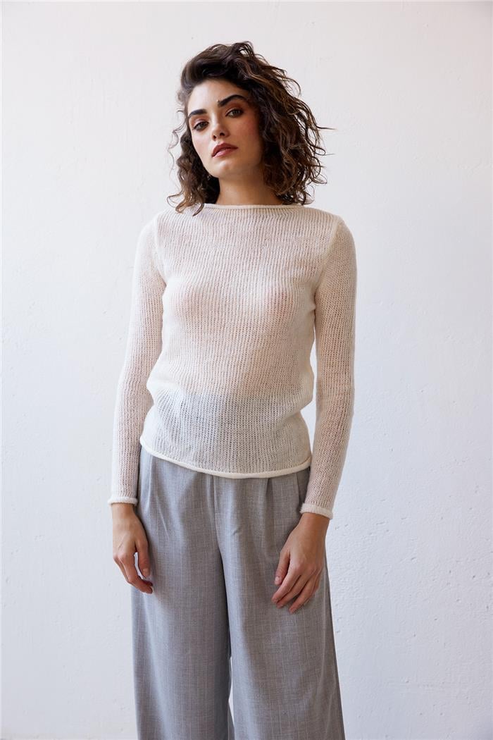 Nisan Kadın Ajurlu Triko Kazak EKRU TT4113-Z (TT4113-Z)