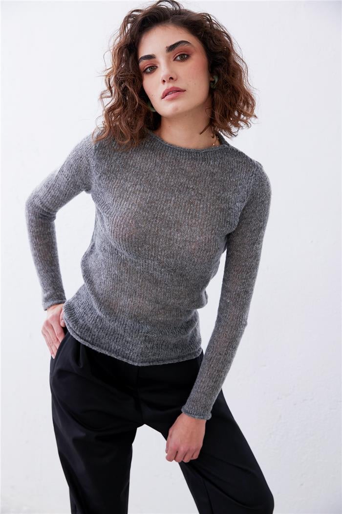 Nisan Kadın Ajurlu Triko Kazak GRİ TT4113-Z (TT4113-Z)