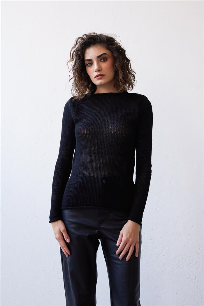 Nisan Kadın Ajurlu Triko Kazak SİYAH TT4113-Z (TT4113-Z)
