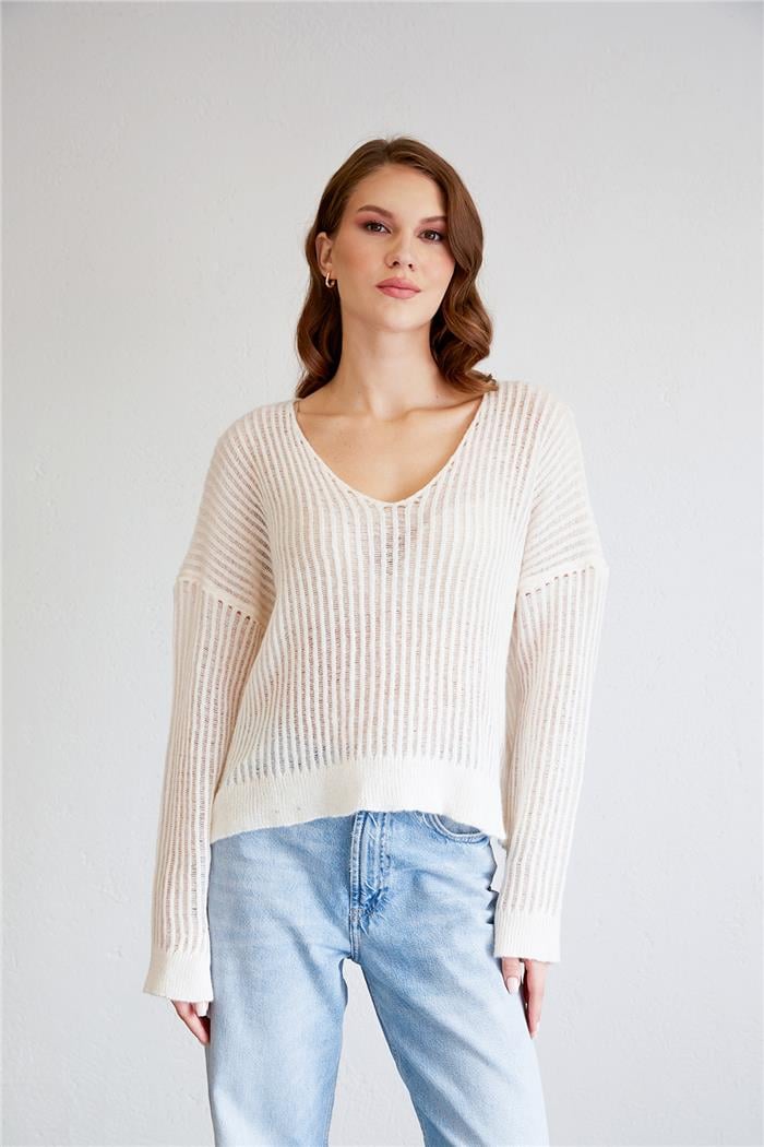 Nisan Kadın Ajurlu V Yaka Kazak EKRU TT4102-Z (TT4102-Z)