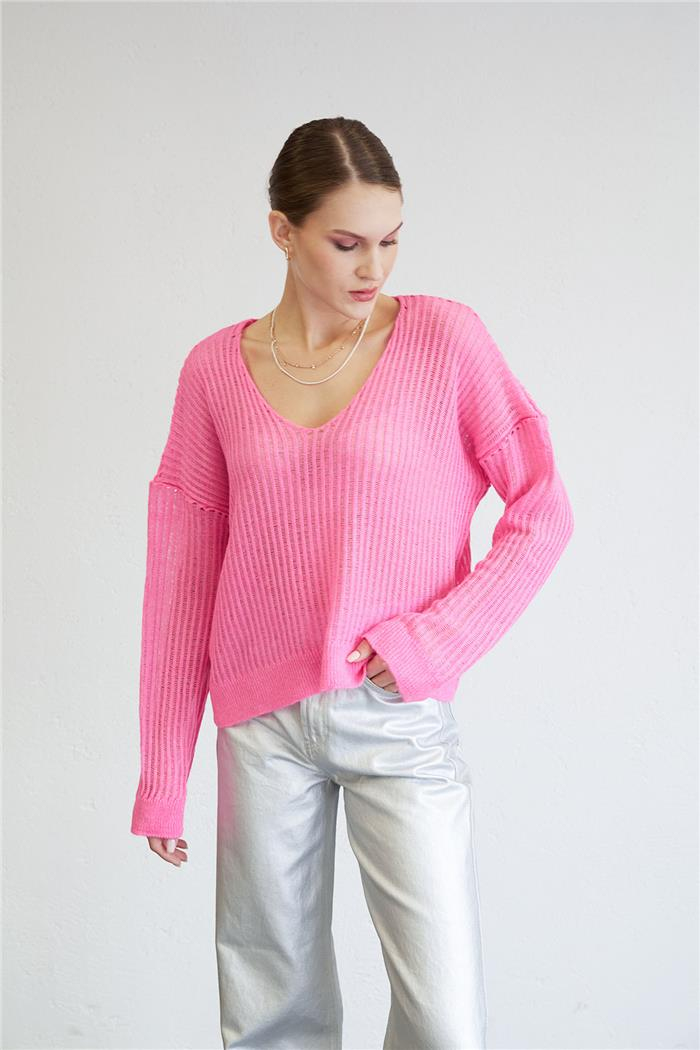 Nisan Kadın Ajurlu V Yaka Kazak FUŞYA TT4102-Z (TT4102-Z)