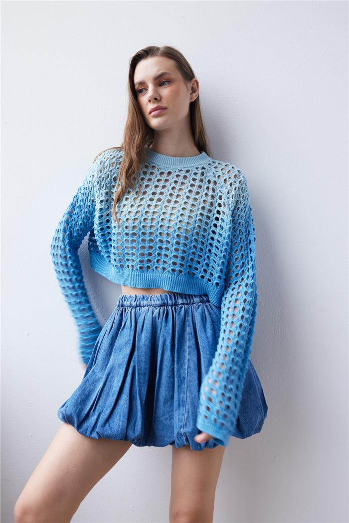 Nisan Kadın Batik Boya Efektli Triko Kazak MAVİ TT4186-Z