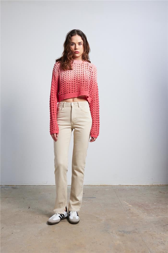 Nisan Kadın Batik Boya Efektli Triko Kazak NAR ÇİÇEĞİ TT4186-Z