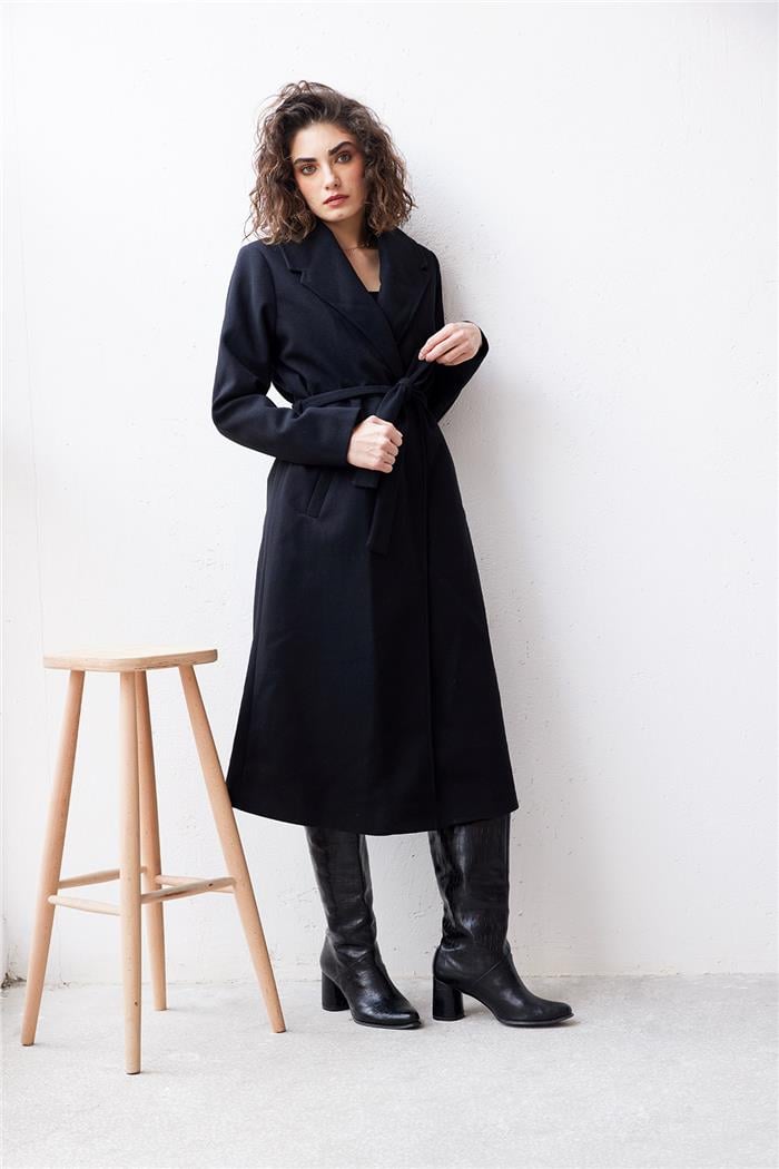 Nisan Kadın Beli Kuşaklı Uzun Kaban SİYAH PD24-1054