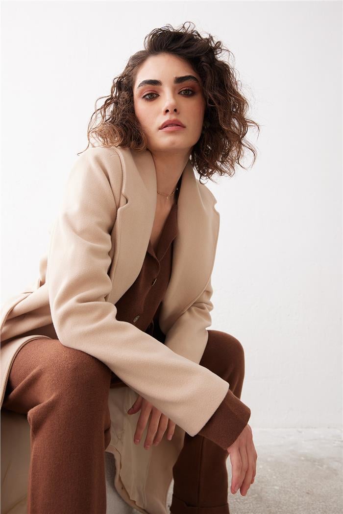 Nisan Kadın Beli Kuşaklı Uzun Kaban TAŞ PD24-1054
