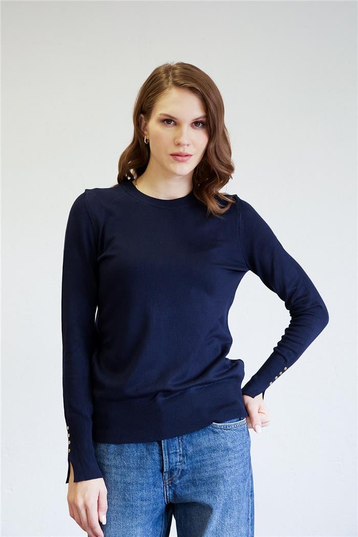 Nisan Kadın Bisiklet Yaka Manşetleri Çıtçıtlı Triko Kazak LACİVERT TT3316-Z