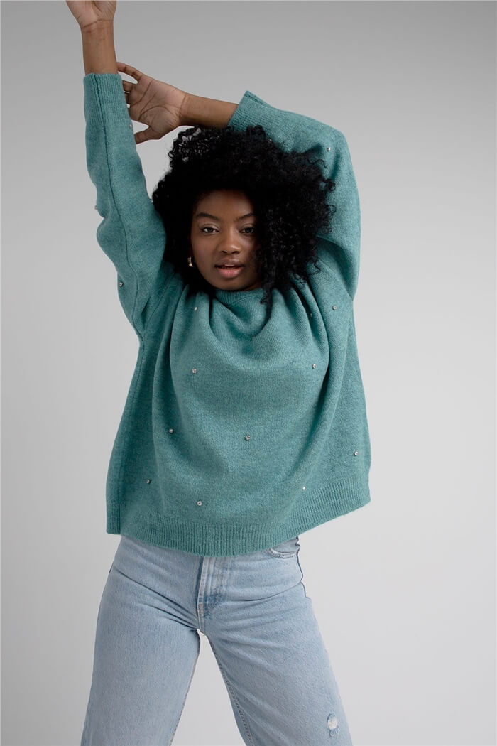 Soğuk kış günlerinde içinizi ısıtacak taşlı salaş kazak modellerimiz, özgün çizgilerle buluşarak stilinizi ortaya koyuyor.