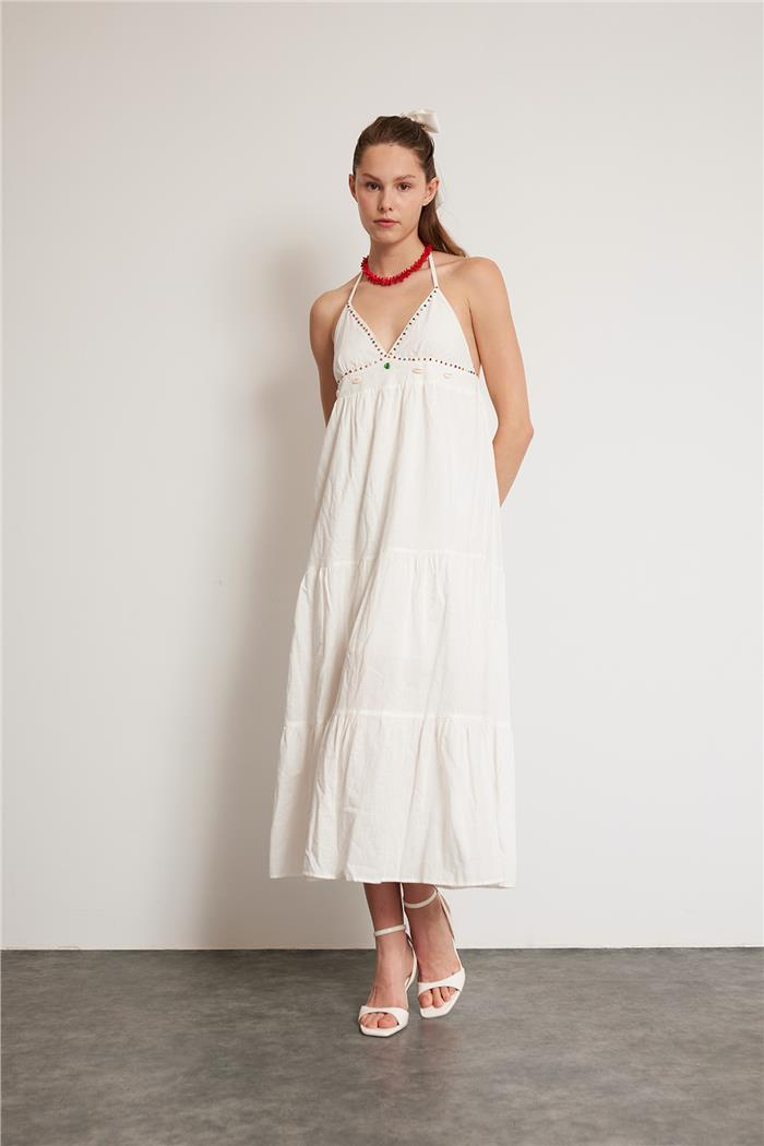 Nisan Kadın Boncuk Detaylı Uzun Elbise EKRU N23-1719 (N23-1719)