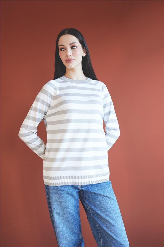 Nisan Kadın Çizgili Bisiklet Yaka Triko Kazak GRİ-EKRU TT3318-Z (TT3318-Z)