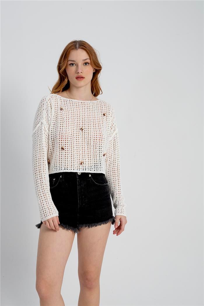 Delikli Boncuk Detaylı Triko Kazak TT3850-Z