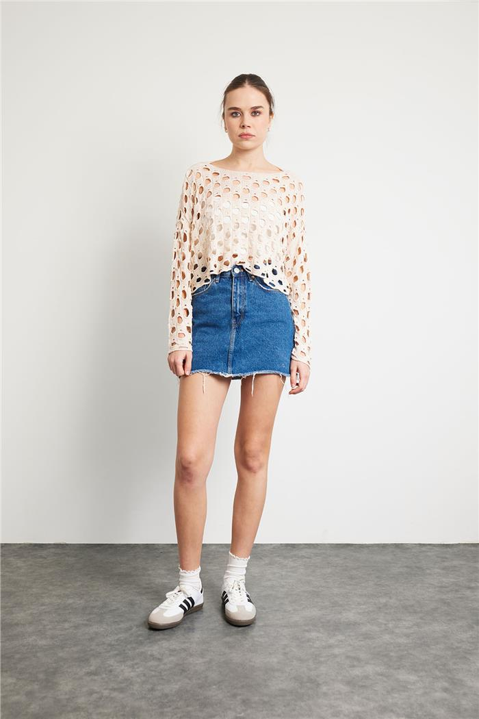 Nisan Kadın Delikli Triko Kazak BEJ TT4157-Z (TT4157-Z)