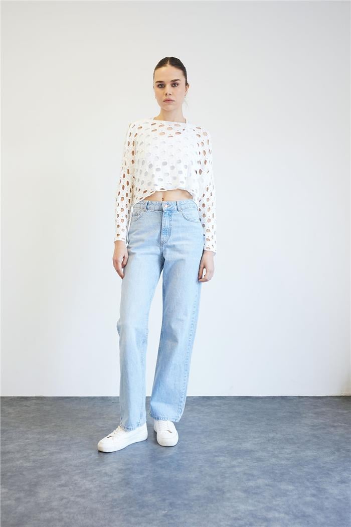 Nisan Kadın Delikli Triko Kazak BEYAZ TT4157-Z (TT4157-Z)