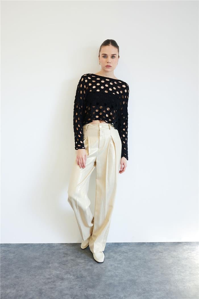 Nisan Kadın Delikli Triko Kazak SİYAH TT4157-Z (TT4157-Z)